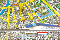 地域について入念な調査をした上で、名所や名物などを盛り込んだカラフルなご当地イラストを制作します(画像は「三浦半島」のイラスト)。印刷物やウェブ展開はもちろん、そのままキービジュアルやシンボルマークとしてもお使いいただけます。